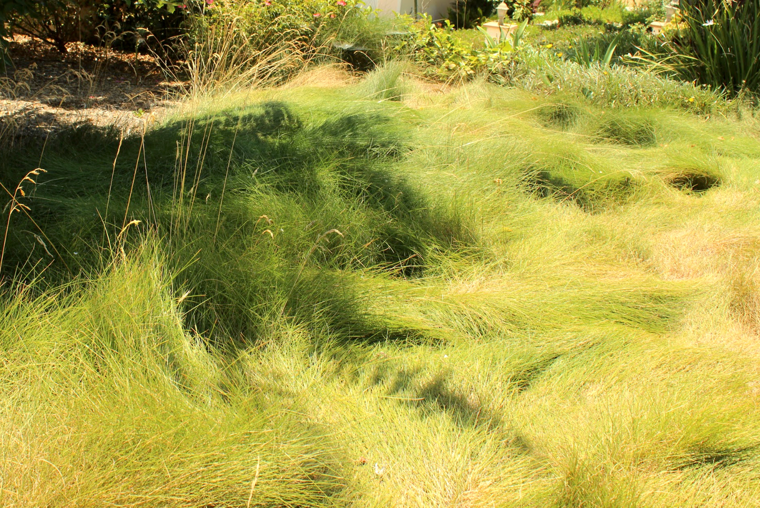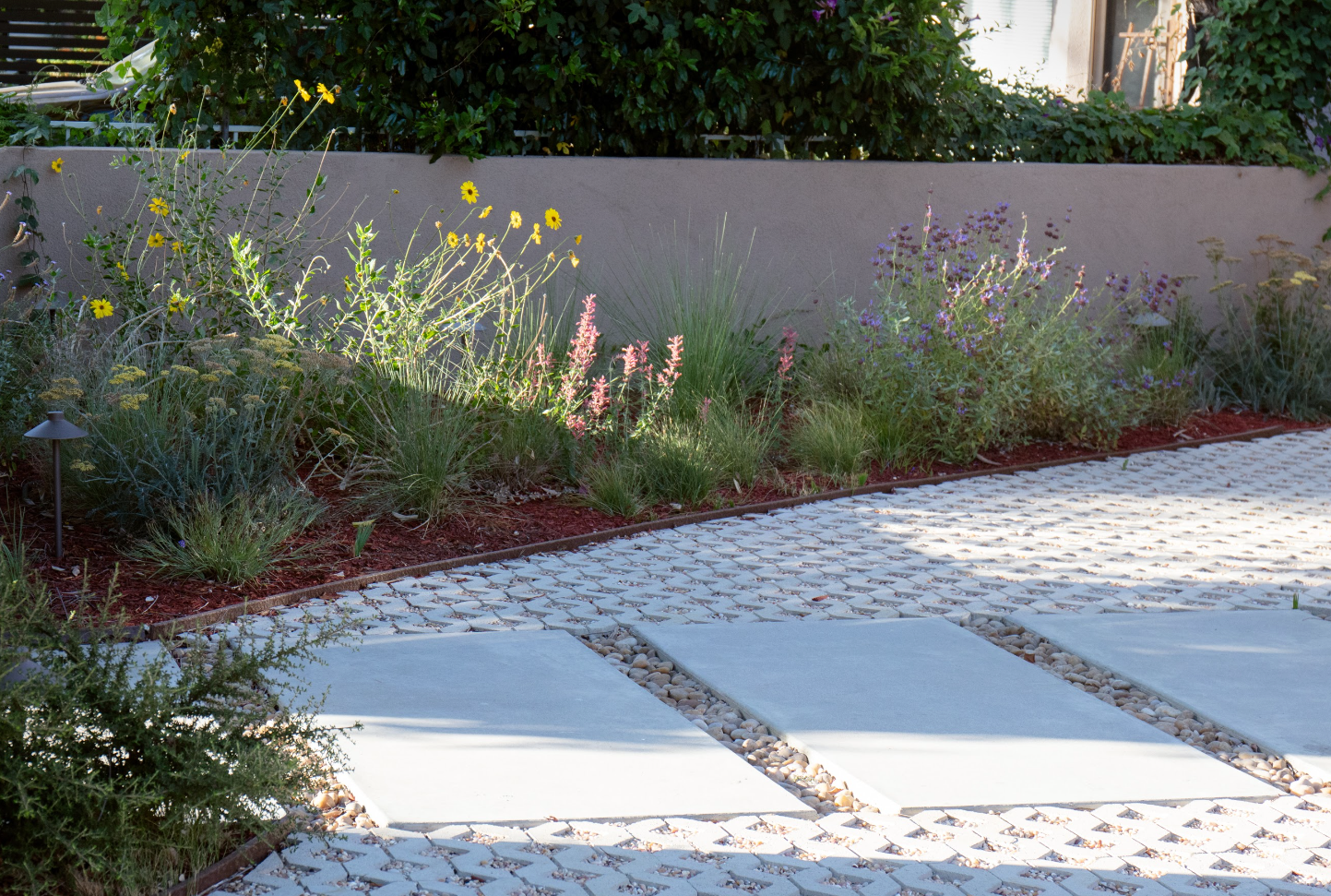 "We’re doing very little actual maintenance and only run our in-ground drip line 1x week in summer... even turning it off for a good portion. Our yard gets 10 hours of DIRECT hot sun. We couldn't keep a lawn green if we tried!"