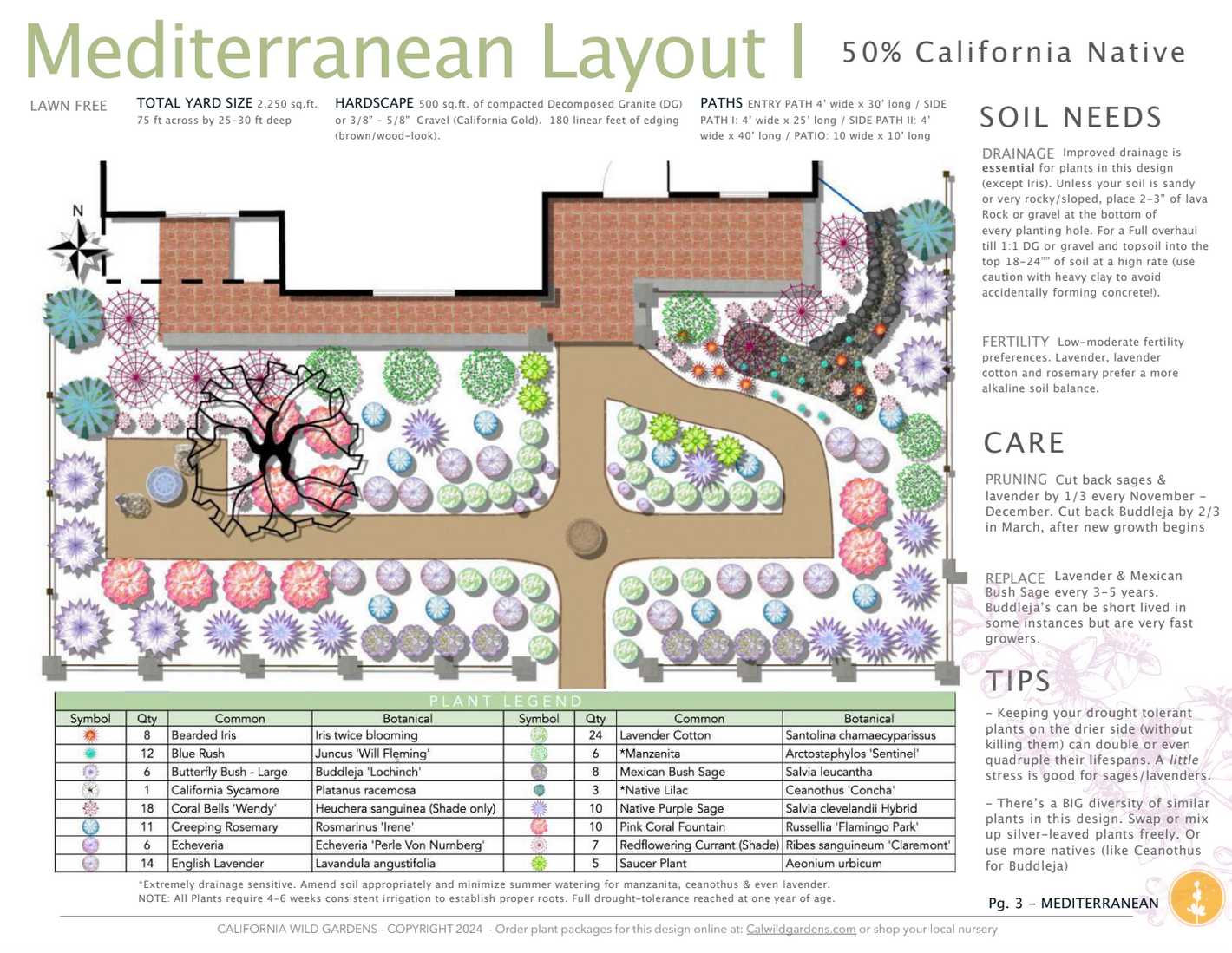 *Many drought-tolerant and California native species are highly sensitive to over watering and may quickly fail if appropriate soil amendment and irrigation precautions are not taken.