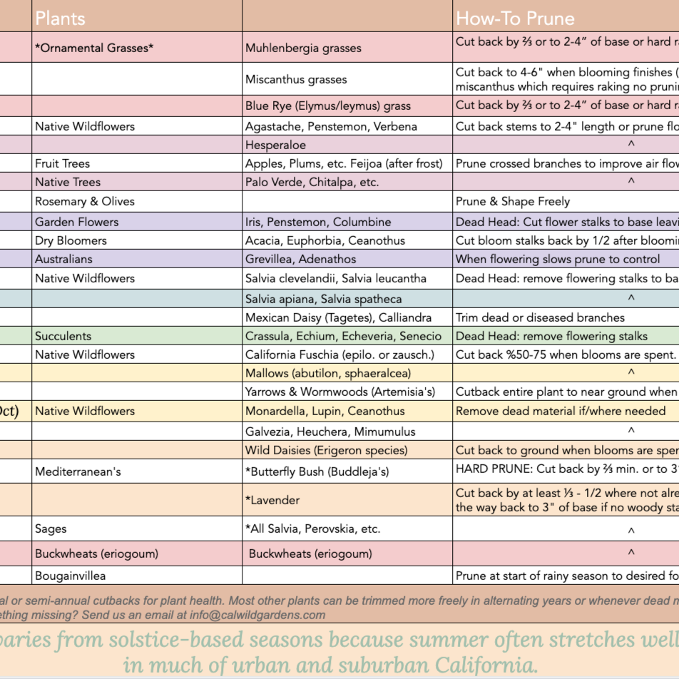 California Pruning Chart