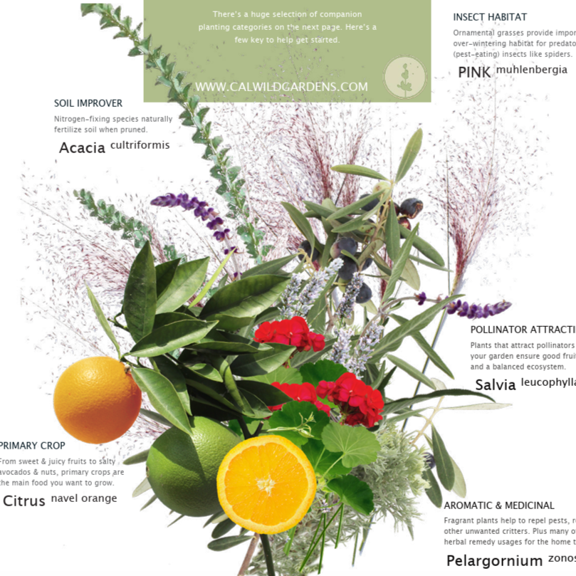 Learn about pollinator-attracting, habitat restoring & soil improving plants to pair with your fruit trees in California to grow produce more easily & naturally.