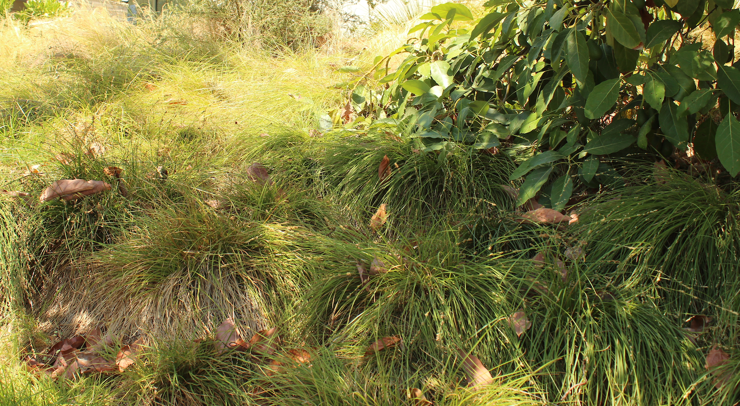 Native to meadows and wildflower fields up and down California. Sedge lawns make great low growing meadows for the home and garden. Foliage is slightly narrower and softer than Carex pansa. Tolerates drought but will tinge brown in summer without regular irrigation (though not as much as Carex pansa). Brown tinge does not hurt grass and can be trimmed off if unsightly