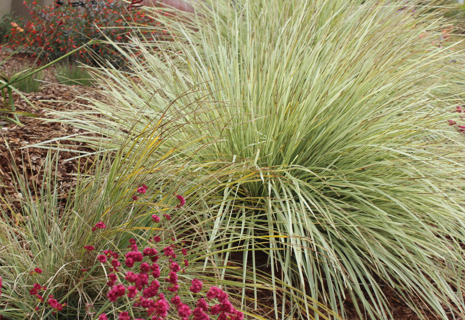 This amazing Australian succulent brings all the beauty of an ornamental grass all year long. With soft swaying foliage that happily takes sun or shade. Drought-tolerant and beneficial to the California home garden in a multitude of ways, this plant is dreamily low-maintenance. 'Platinum Beauty ®' brings all the blonde beauty with its warm glowing variegation (request 'Arctic Frost' in your order notes for a true white). 'Breeze' offers an easy year round green. Subtle brown flowers can be clipped off if desired. to 3' high and 4' wide. Pricing is for 40" spacing (3.5'). Intermix with wildflowers for an easy meadow.