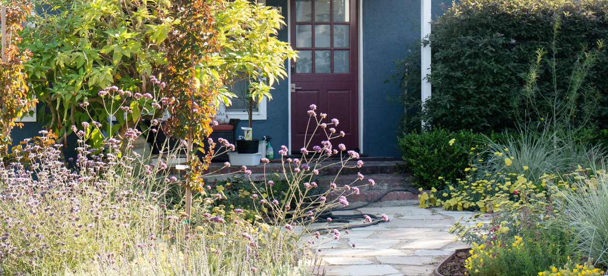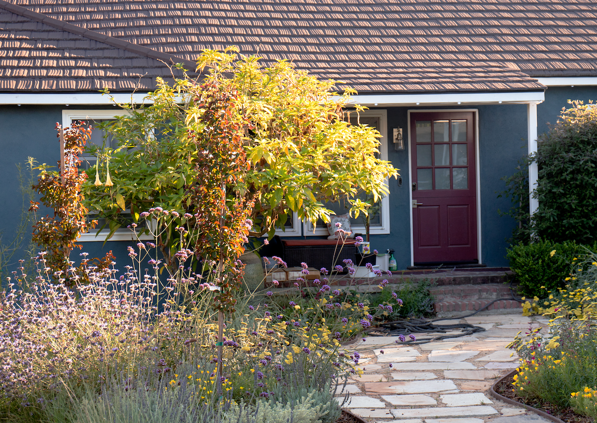 Yarrow 'Moonglow', Ruby Penstemon (or Margarita BOP), Magenta Baby Sage, Monkey Flower, Coastal Daisy, Fairywand Flower, Blue Rye Grass, Verbena (non native) Asclepias (any varietal available, fluctuates greatly depending on season), Salvia Clevelandii or Leucophylla hybrid + Wormwood Sage, Gold Muhly Grass, Mexican Lobellia